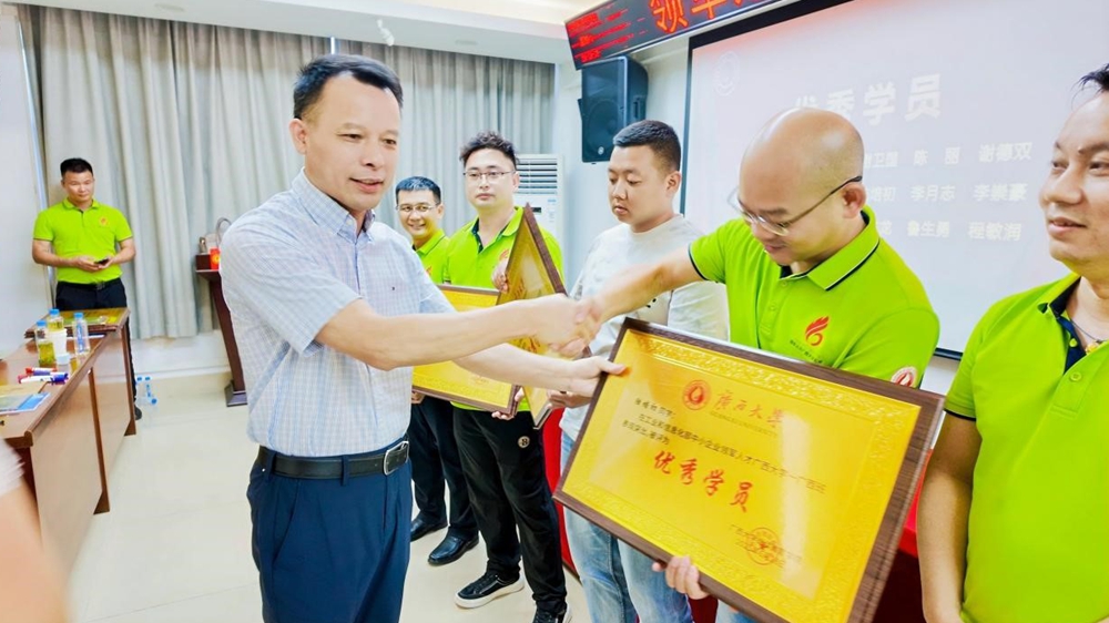 结业典礼上,闭富春院长、徐华副院长为学员颁发工信部认证的结业证书及广西大学结业证书。开云最新网址中国有限公司将以领军人才项目为支点,持续撬动企业创新潜能,为广西构建现代化产业体系输送兼具全球视野、桂商精神与社会担当的新一代企业家力量。本期学员的结业标志着广西高端企业家队伍进一步壮大,成果丰硕,实战赋能破解发展难题。