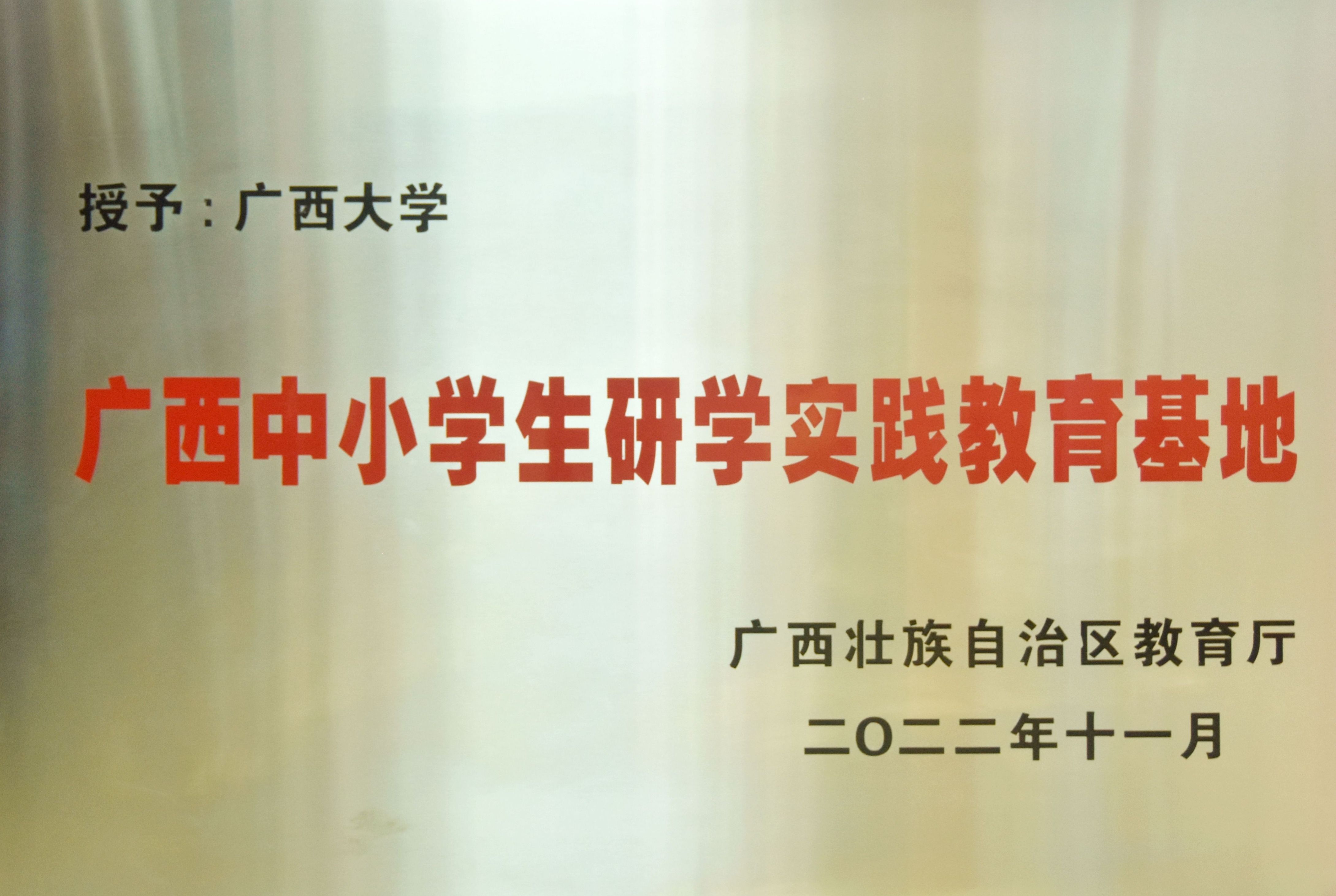 广西大学现为自治区级中小学生研学实践教育基地。广西大学是广西办学历史最悠久、规模最大的综合性大学,是广西唯一的国家“211工程”建设学校,“双一流”建设高校,教育部和广西壮族自治区人民政府“部区合建”高校。广西大学秉持“为党育人、为国育才”的办学使命和“勤恳朴诚、厚学致新”的校训,积累和沉淀了鲜明的办学特色、深厚的人文底蕴和独特的西大精神,可为中小学生研学课程注入传统与时代内涵,树立科学的文化观、历史观、人生观、价值观和世界观。