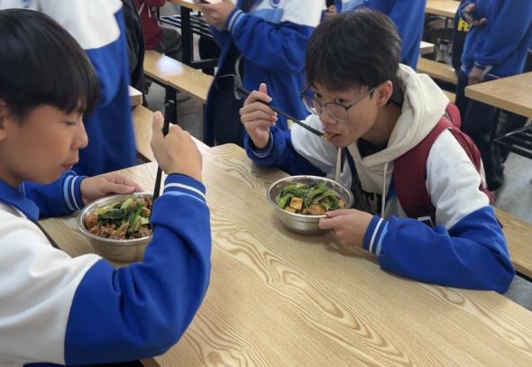 中午,同学们在碧湖苑餐厅享用了美味的午餐。用餐期间,大家秩序井然,文明用餐,享受着这片刻的休息时光。 在研学导师的组织下,同学们有序排队进入餐厅,安静就餐。用餐期间,大家遵守秩序,文明有礼,展现出良好的素养。这次在大学食堂的用餐经历让同学们对大学生活多了一份期待。