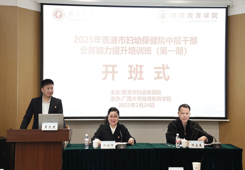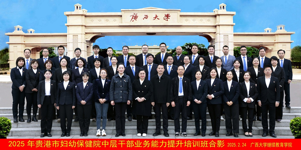 2025年2月24日,2025年贵港市妇幼保健院中层干部业务能力提升培训班(第一期)在我院开班。贵港市妇幼保健院党委副书记、院长谭健坤出席开班式并作动员讲话,我院院长闭富春出席开班式并致辞。