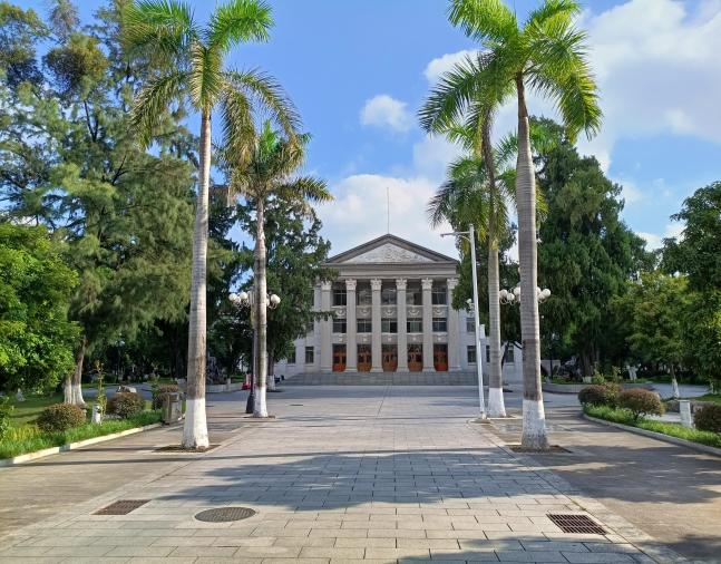 研学线路 主要包括:育才广场、大礼堂、镜湖/鉴湖(校园荷花节)、荟萃楼及汇学广场、汇学堂(君武文化艺术教育中心)、校友馆(校友之家)、网球中心、西体育馆、崇左桥、图书馆(校史馆)、时光广场、哺育园广场、新第六教学楼、劝学岛、大学生活动中心、东校园水塔、碧云湖和爱国民主运动纪念碑、新经济学院大楼、校训文化印林及各教学科研单位(实验室)等。