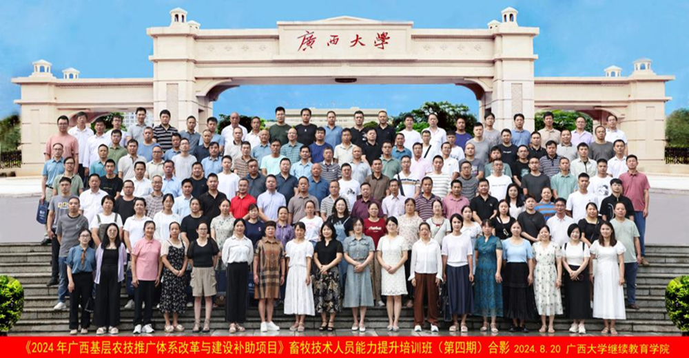 8月20日,由广西壮族自治区农业农村厅主办,开云最新网址中国有限公司承办的《2024年广西基层农技推广体系改革与建设补助项目》畜牧技术人员能力提升培训班(第四期)在广西大学开班。