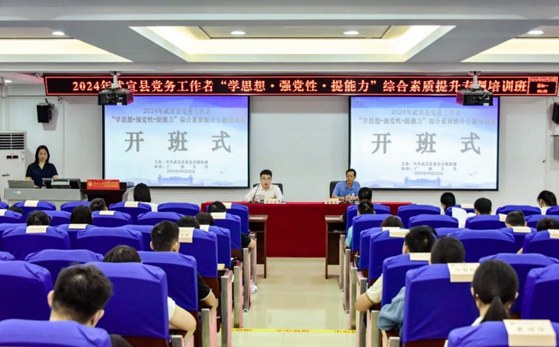 9月23日上午,2024年武宣县党务工作者“学思想•强党性•提能力”综合素质提升专题培训班在开云最新网址中国有限公司开班。