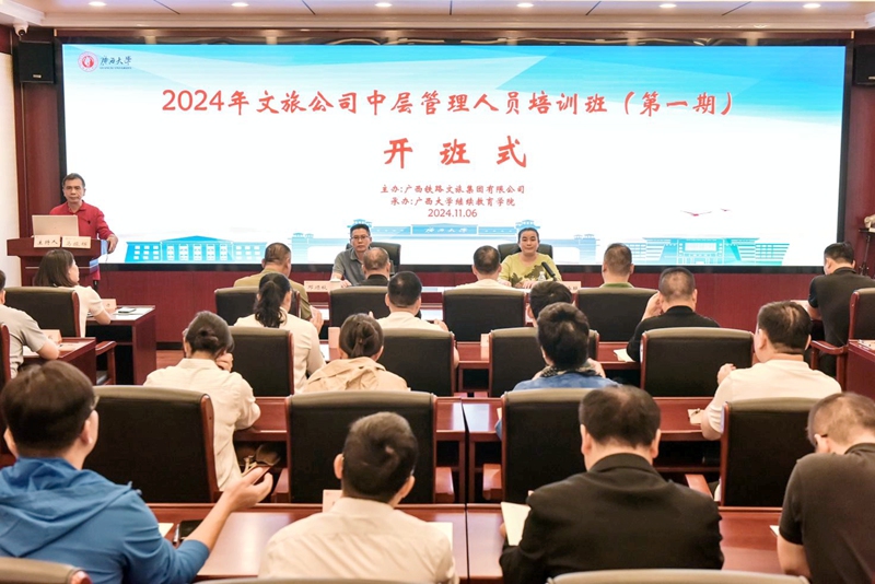 11月6日,2024年文旅公司中层管理人员培训班(第一期)在我院开班。广西铁路文旅集团有限公司总经理邓顺秋、我院副院长曾海艳出席开班式。