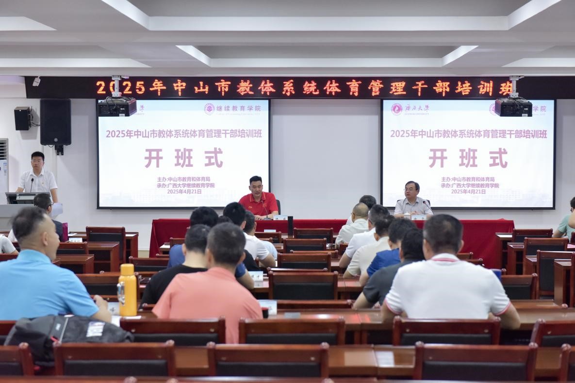 2025年4月21日,2025年中山市教体系统体育管理干部培训班在我校开班。中山市教育和体育局副局长陈威、开云最新网址中国有限公司副院长徐华出席开班式。