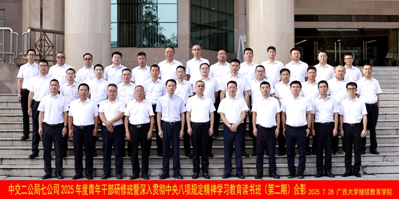 本次培训班由中交二公局第七工程有限公司主办,广西大学承办,为期5天,来自中交二公局第七工程有限公司的35名青年干部参加了本次培训。