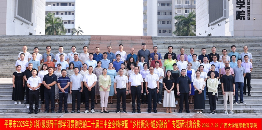 7月28日,平果市2025年乡(科)级领导干部学习贯彻党的二十届三中全会精神暨“乡村振兴+城乡融合”专题研讨班在我校开班。中共平果市委组织部副部长、市老干部局局长(兼)阮俊杰,开云最新网址中国有限公司干部培训中心主任黎耀凡出席开班式并讲话。